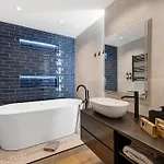 الغرف منسقة مع الشرفة والخزنة الفردية والمكتب للعمل. ملحقات الحمام تتضمن الدوش المتحرك وحوض الاستحمام.